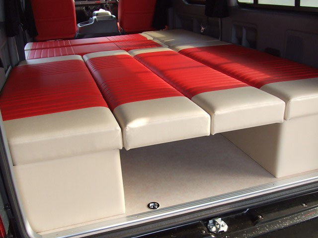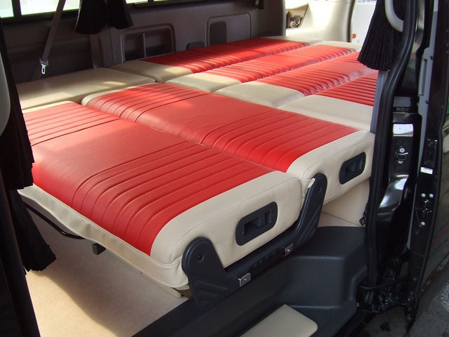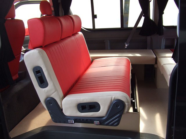 | 標準装備 | ・遮音シート入り3層床張り ・セカンドベンチシート&二の字シート ・全席シートカバー&張替 ・各種テーブル |