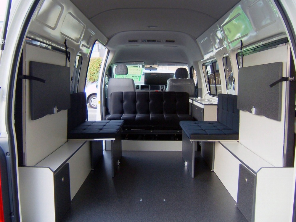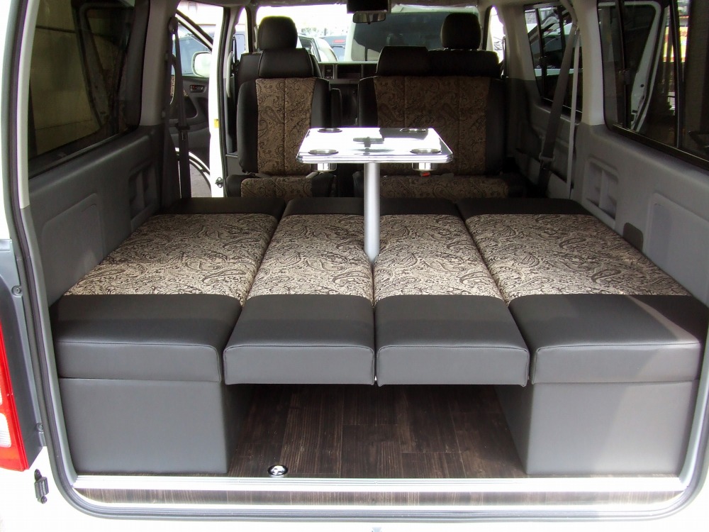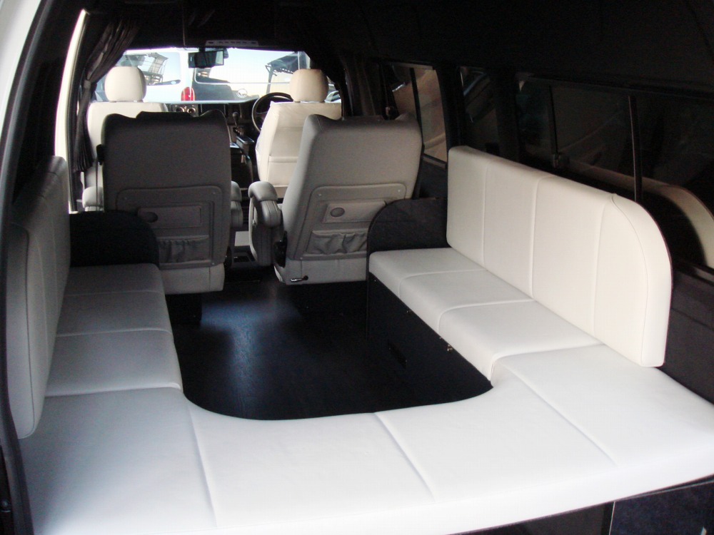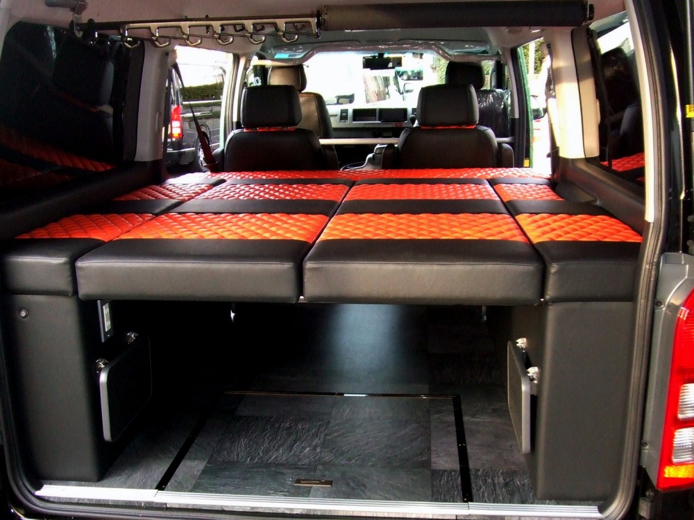 200系ハイエースを、トランポ・キャンピング・キャンパー・ラグジー・3列シートワゴン等、お客様との徹底したお打ち合わせのうえ、ご要望に合ったお客様だけの一台を製作致します。