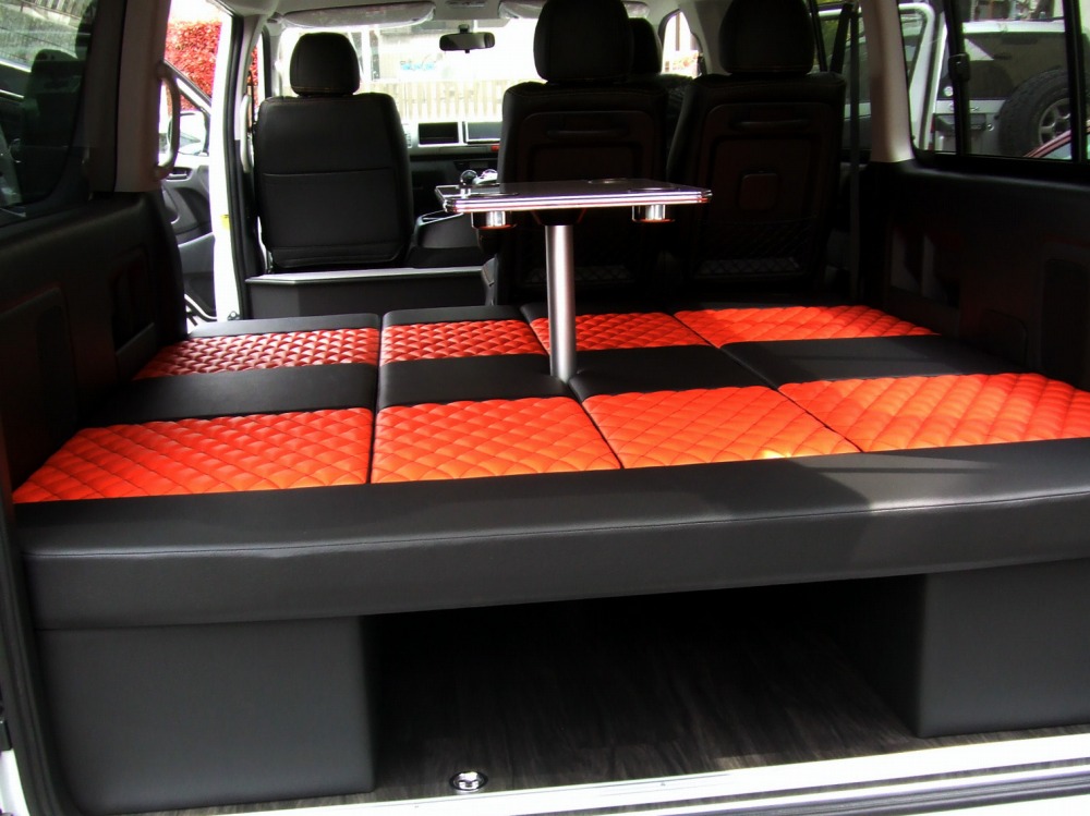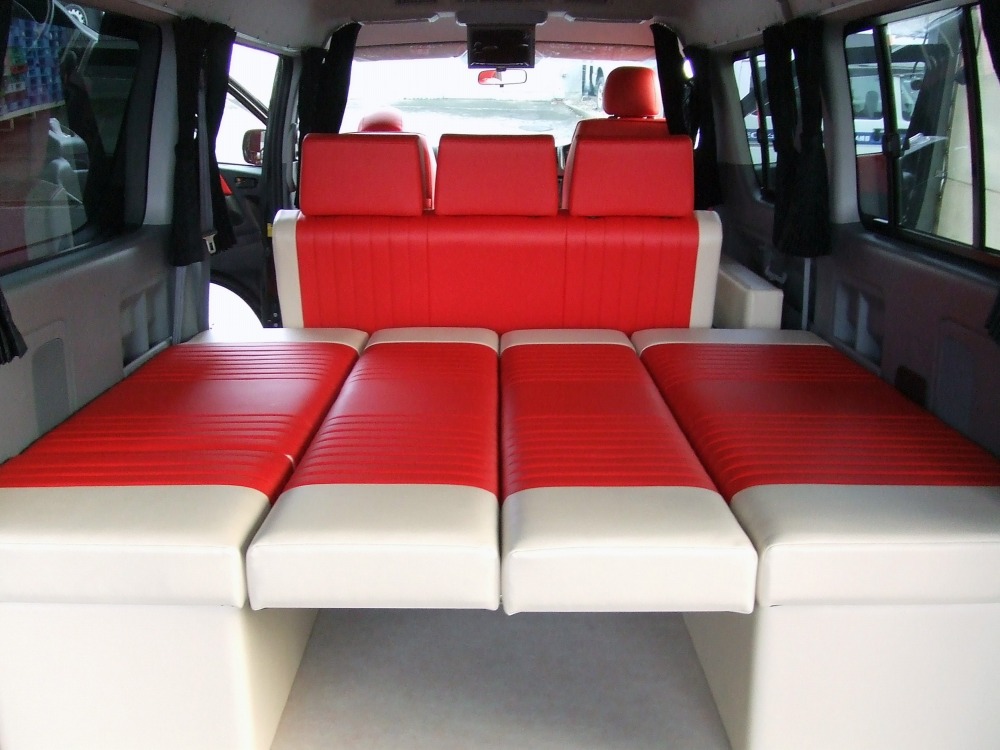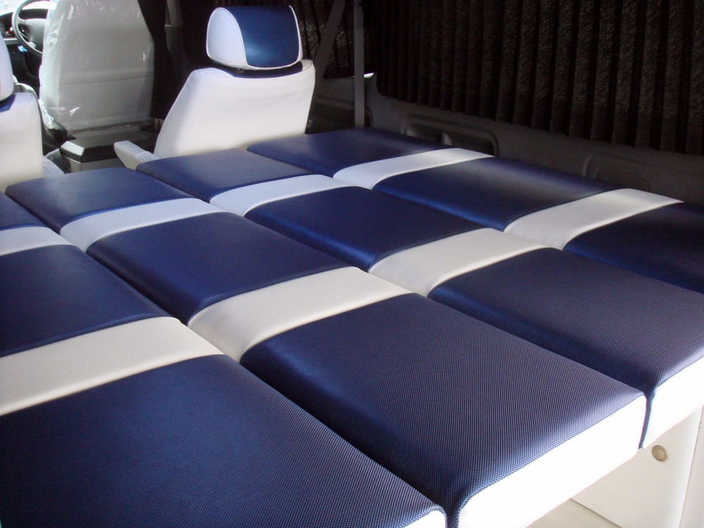 キャンピング・車中泊・トランポ・リクライニング機能付・簡易タイプ等、お客様の目的にあわせた各種ベッドを、お好きな生地カラーからお選び頂けます。